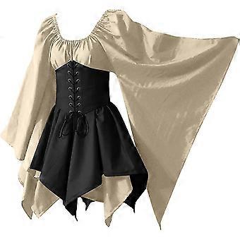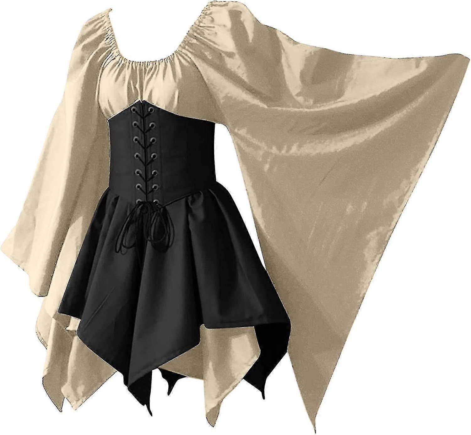 Women Gothic Short Corset Dress Halloween Medieval Renaissance Costume Bell Sleeve Irregular Hanky Hem Elf Fairy Dress