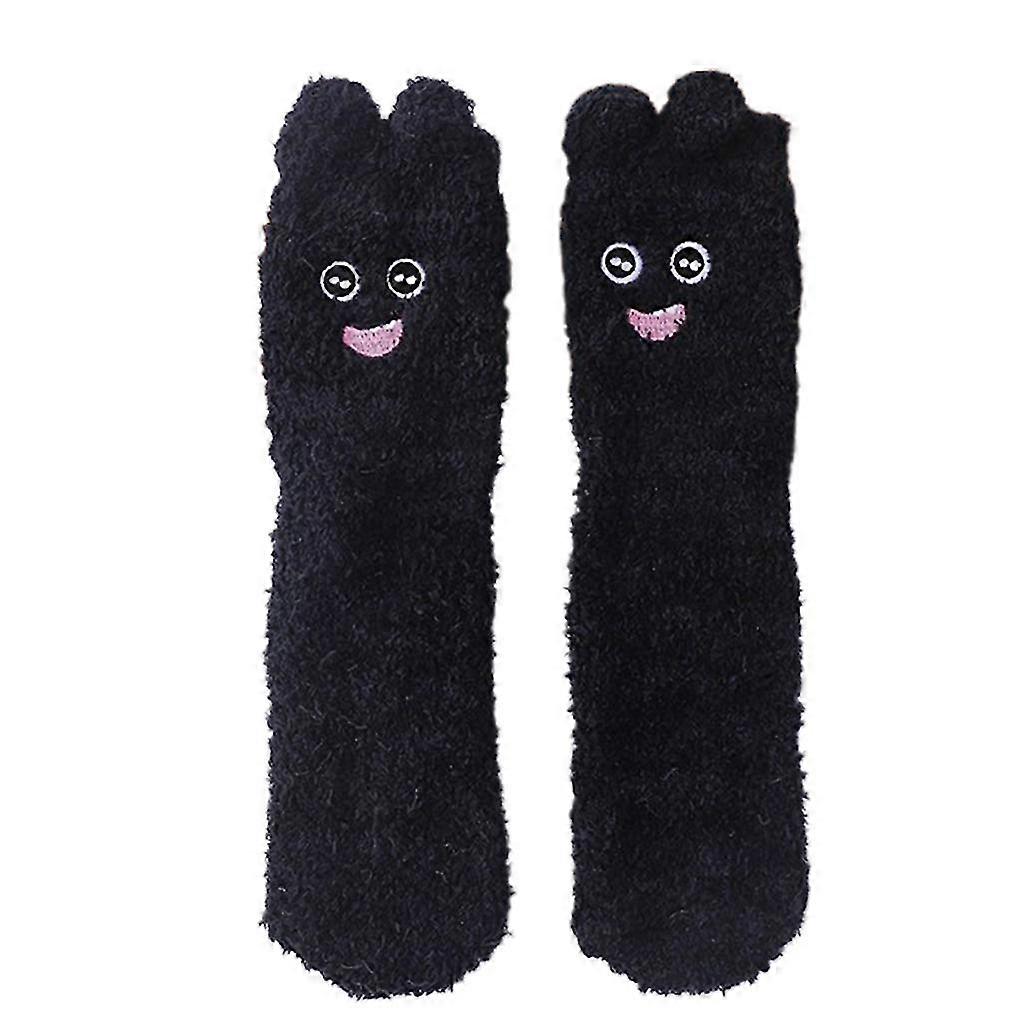 Women Cartoon Animal Embroidery Fuzzy Slipper Socks Cute 3d Ears Winter Coral Velvet Thicken Fluffy Warm Floor Sleeping Hosiery Foot Warmer
