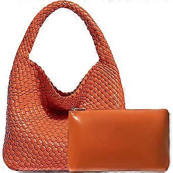 Women Vegan Leather Woven Tote Handbag Fashion Shoulder Bag with Purse