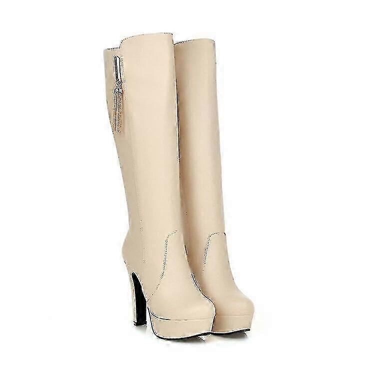 Women Boots Autumn Winter Warm High Heels Pu Leather Knee High Shoes Waterproof Sexy Slip On Black White Brown