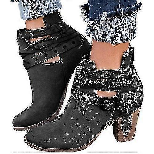 Women High Heels Boots Buckle Strap Ankle Shoes Winter Autumn Casual Chunky Heels Boots