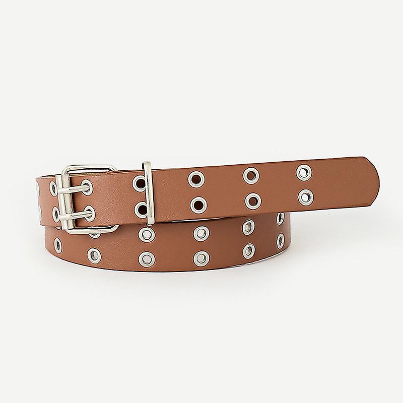 Women Belts Double Row Air Hole Belt Fashionable Faux Leather Simple Casual Decorative Hollow-out Full Hole Belt For Women