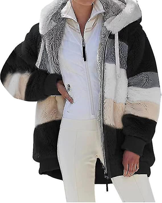 Womens Plush Hooded Sweatshirts Sweater Fall Winter Pullover Zipper Coats With Pocket