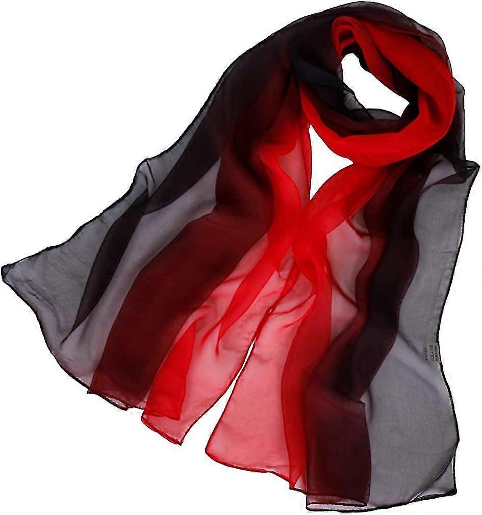 Women's Gradient Colors Silk Scarves Soft Lightweight Blend Ombre Chiffon Oblong Olaof Scarf (red And Black2)