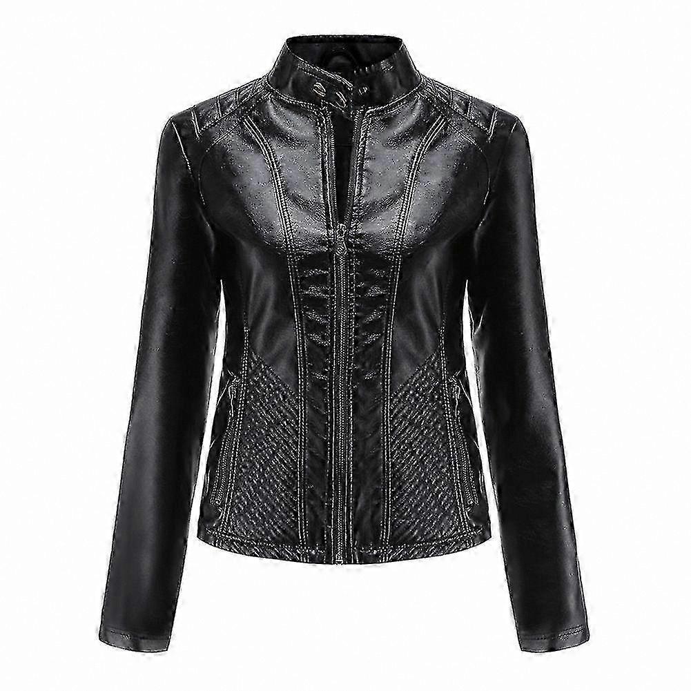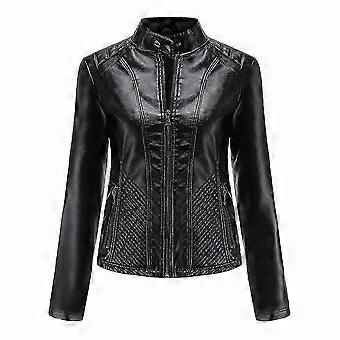 Women's Stylish Solid Color Emed Stand Collar Fitted Leather Jacket