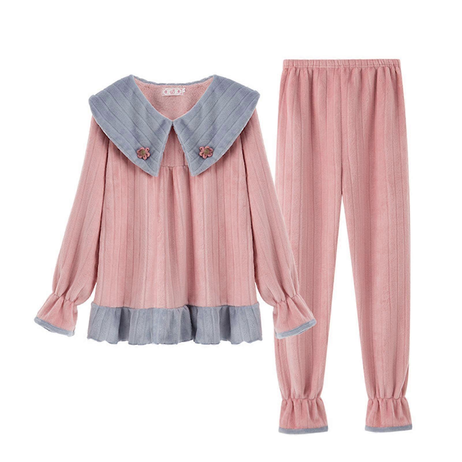 Women's Pajamas Set Fashion Fleece Long Sleeve Sleepwear Casual Warming Nightgown For Autumn Winter