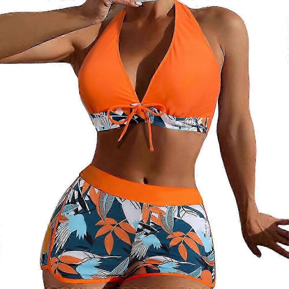 Women's Bikini Swimsuit Halterneck Push Up Bra Swim Shorts Two Piece Bathing Suit Swimwear Summer Beachwear Swimming Costume