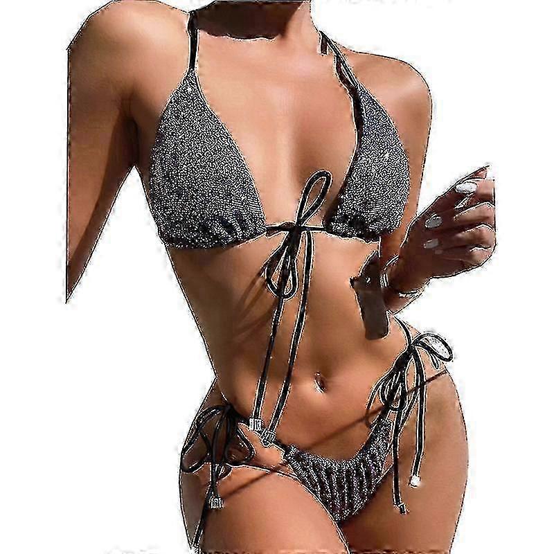 Women Sparkle Glitter Push-up Bra Bandage Bikini Set Swimsuit Triangle Swimwear Bathing Suit