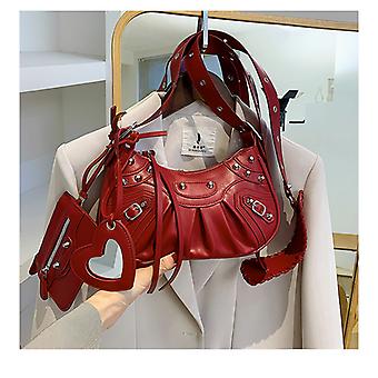 المرأة تحت الإبط حقيبة مطوية الهلال الأم حقيبة الكتف أنثى الأوروبية والأمريكية الرجعية برشام حقيبة دراجة نارية