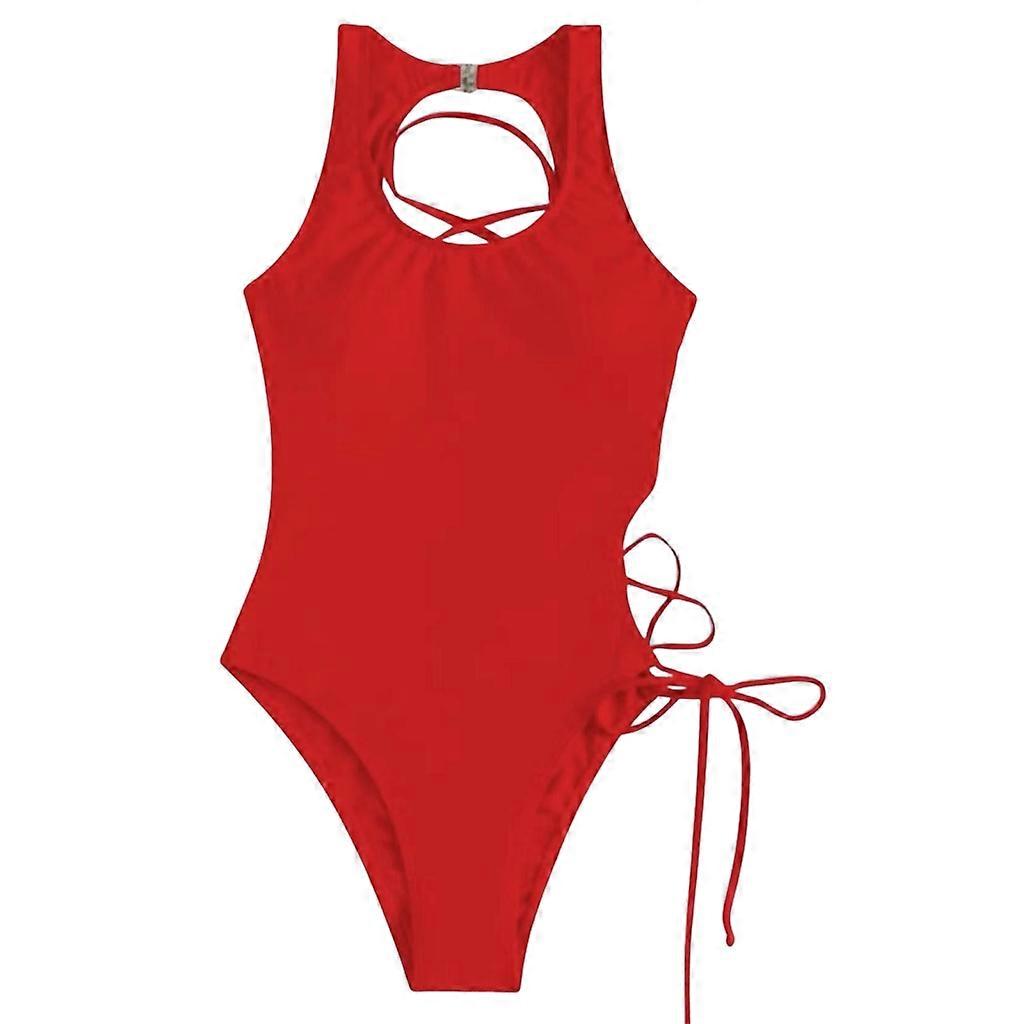 Womens Hollow One Piece Swimwear Ladies Lace Up Swimsuit Backless Bathing Suit