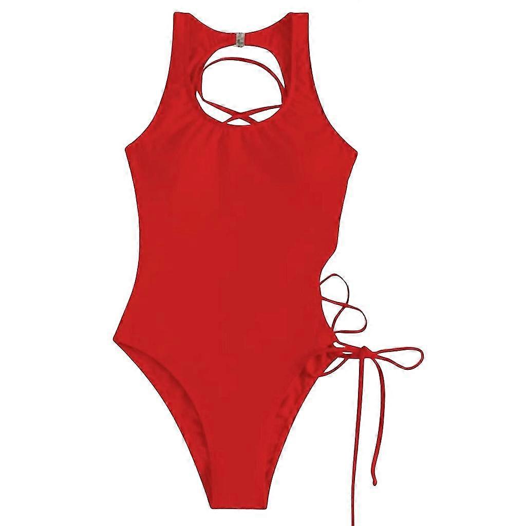 Womens Hollow One Piece Swimwear Ladies Lace Up Swimsuit Backless Bathing Suit