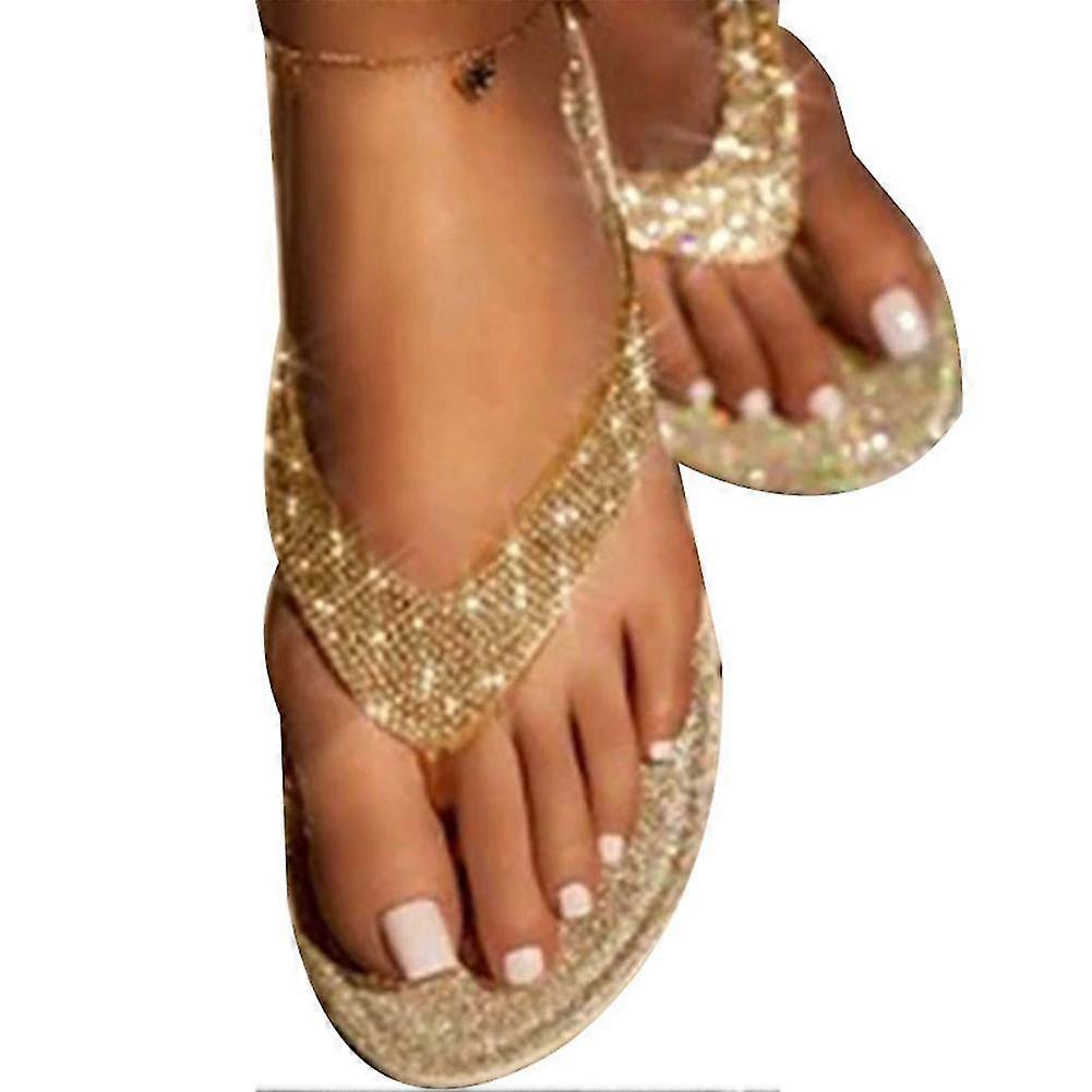 Women's Rhinestone Glitter Flat Slippers Slip On Sandals Beach Summer Flip Flops