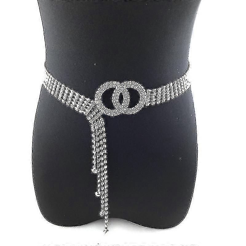 Women Rhinestone Belt Shiny Diamond Fashion Crystal Ladies Double O-ring Waist Belt For Jeans Dresses