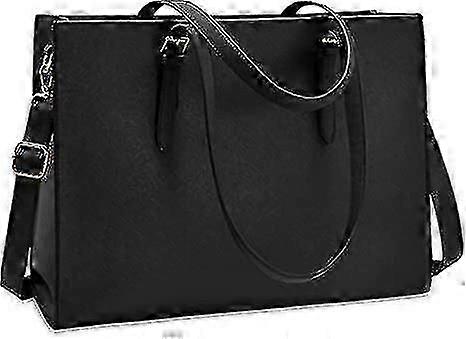 Women's Laptop Bag Waterproof Lightweight Leather 15.6 Inch Laptop Handbag Business Office Briefcase Work Bag Black