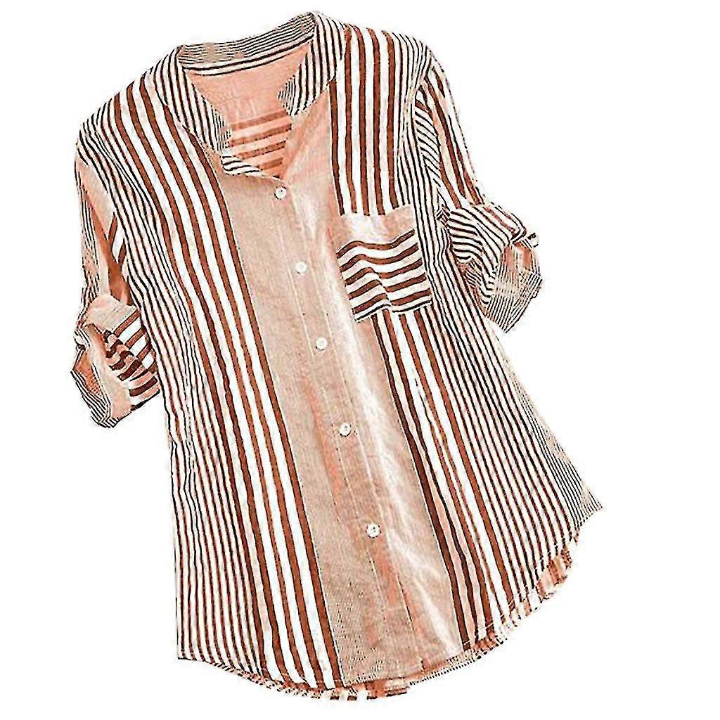 Women Plus Size Three Quarter Striped Print V-neck Loose Fit Top T-shi