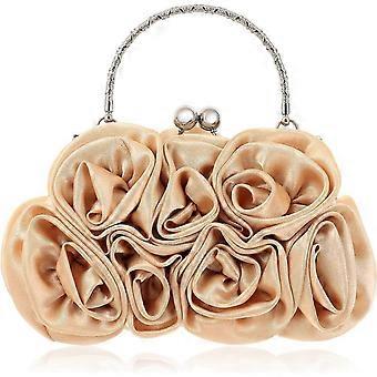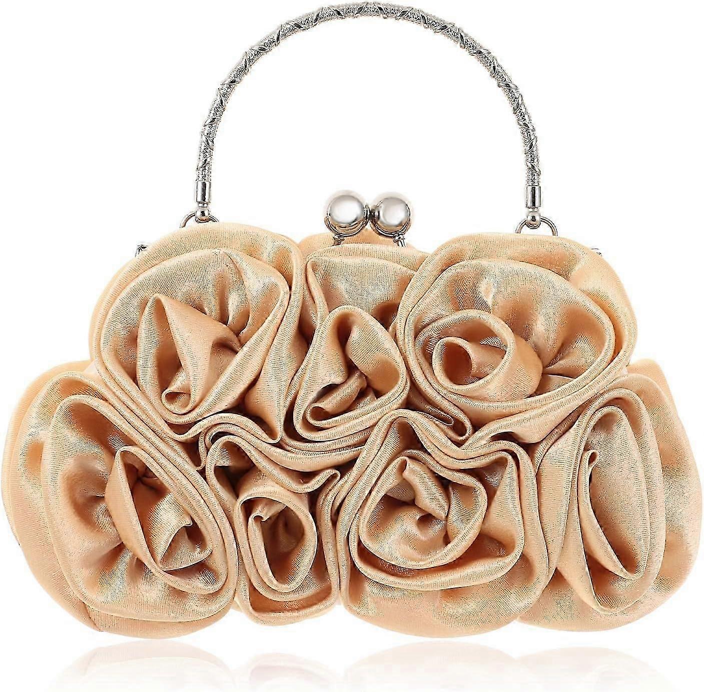 Women Flower Clutch Purse Rose Satin Evening Handbag Small Purse With Detachable Chain Strap For Wedding Party