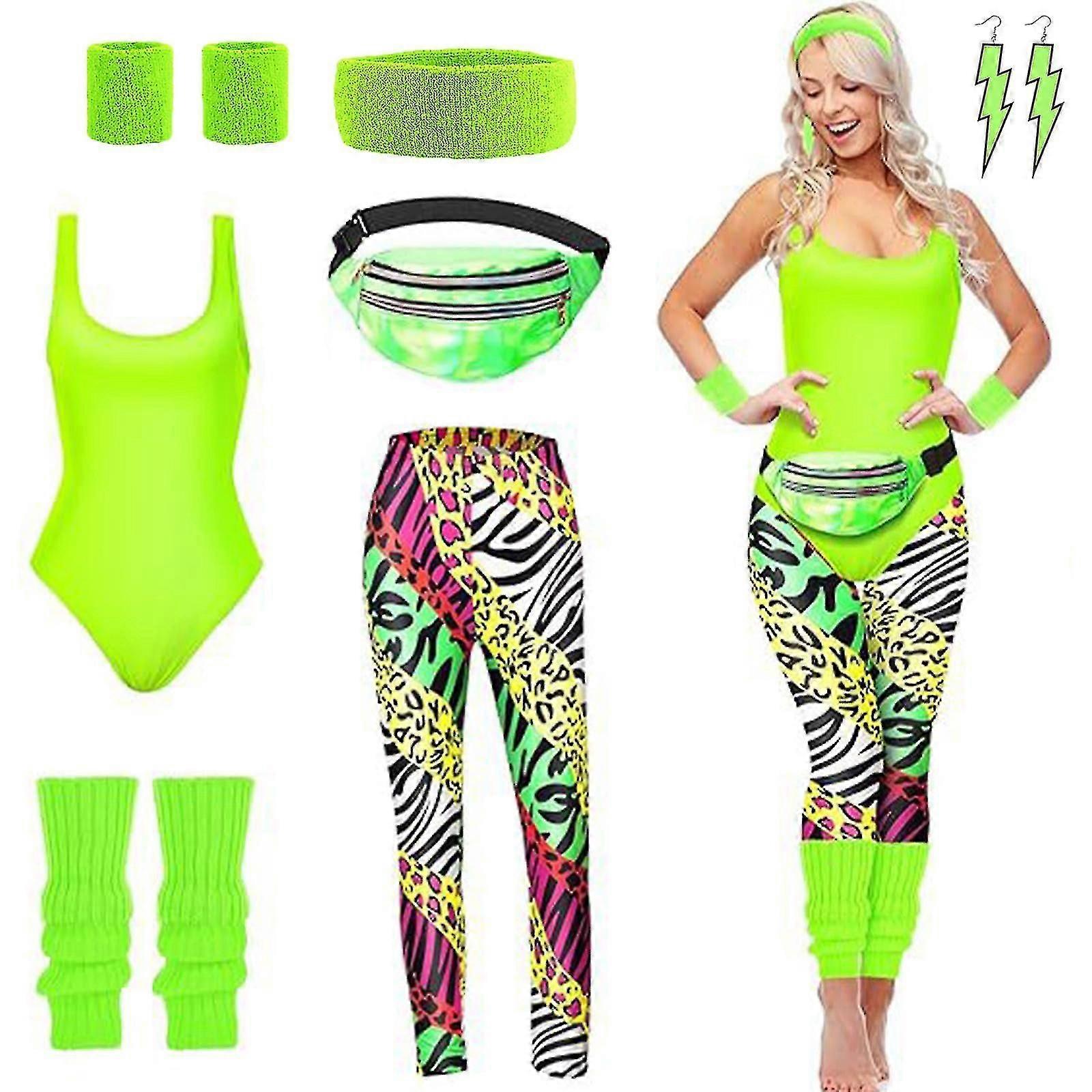 Women's Costume 80s 90s 80s Outfit Women's Set, 80s Accessories Outfit Women's with Leggings, Leg Warmers, Belt Bag, 80s Carnival Costume Accessories