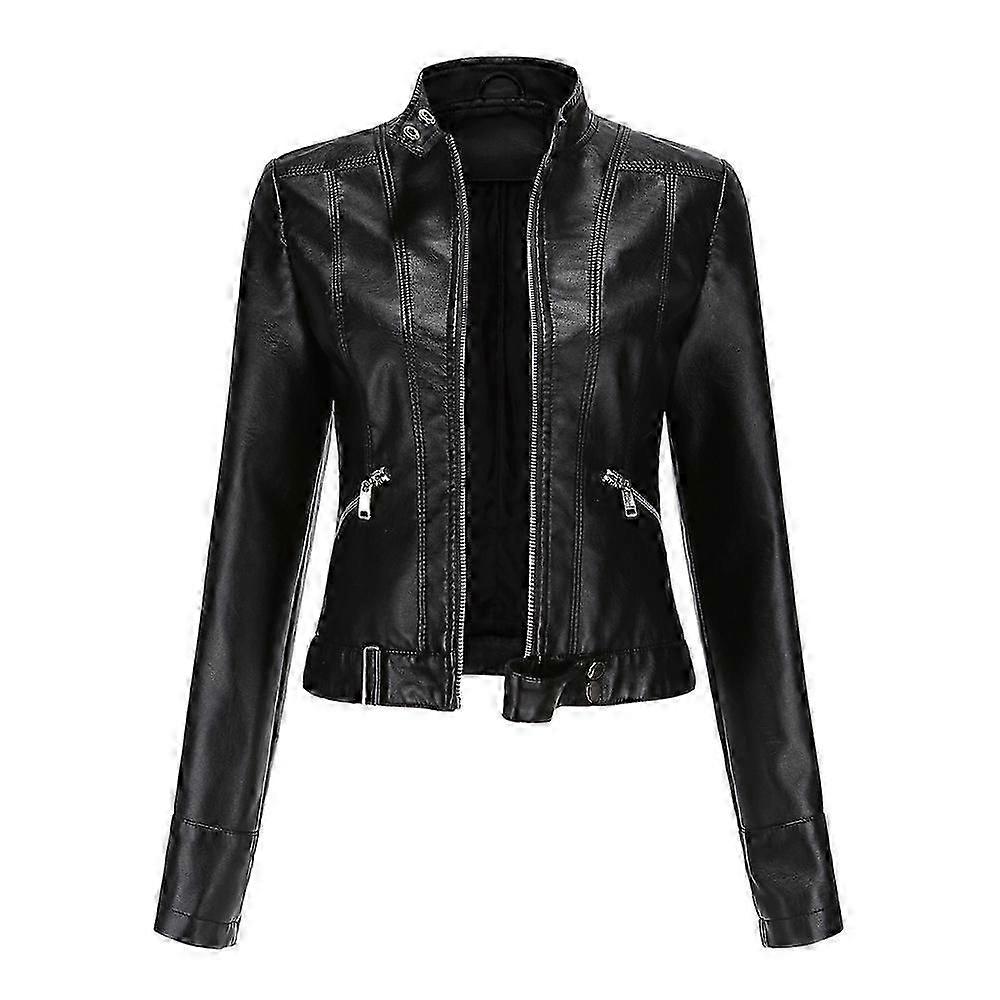 Women's Short Leather Jacket Spring Autumn Standing Collar Women's Leather Jacket