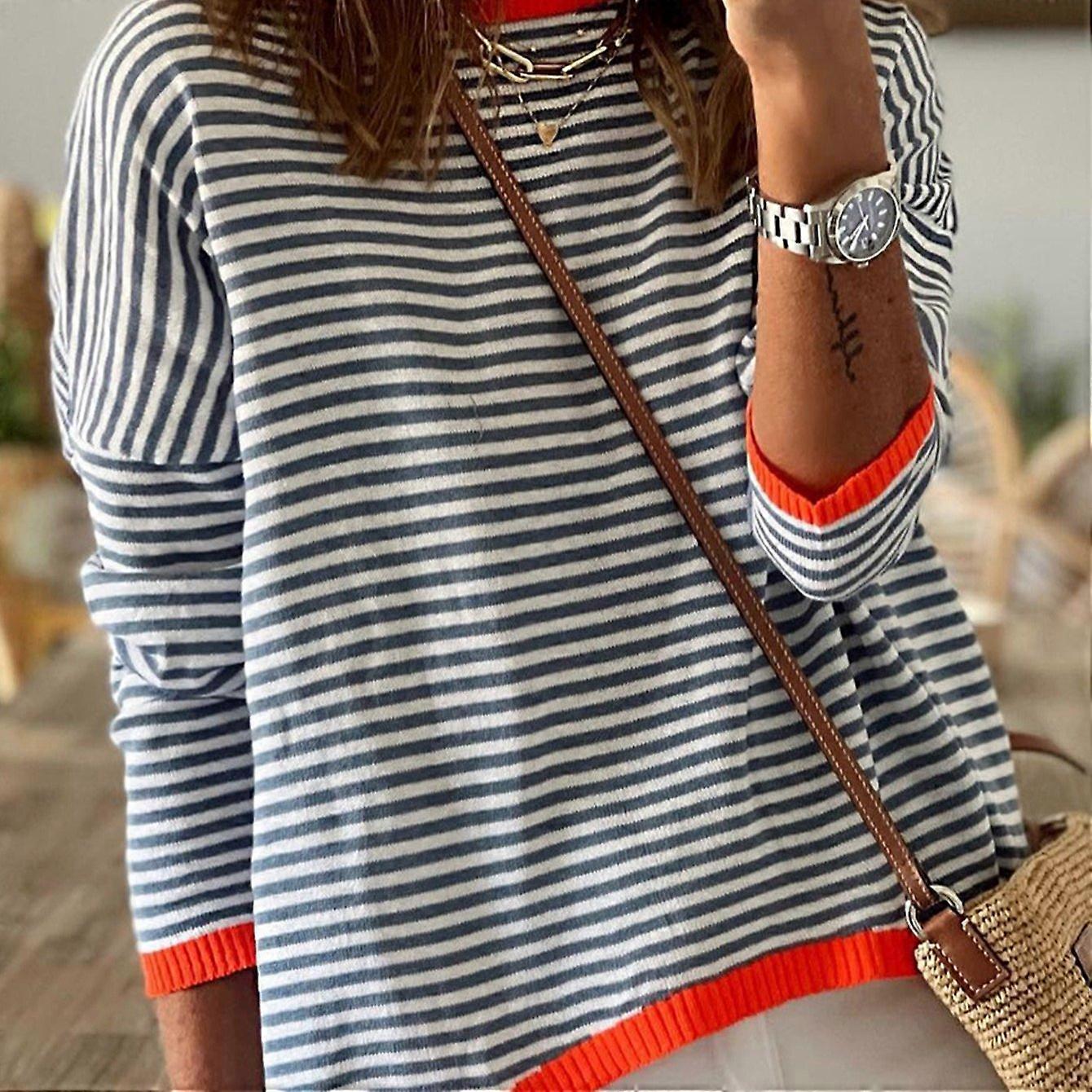 Women's Sweater Contrast Striped Crew Neck Side Stripe Pullovers