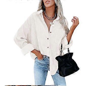 المرأة طويلة الأكمام سروال قصير قميص زر فضفاض عارضة جاكيت كبير الحجم مع جيب