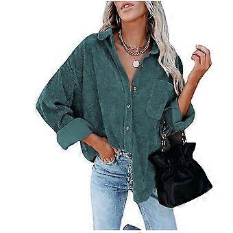 المرأة طويلة الأكمام سروال قصير قميص زر فضفاض عارضة جاكيت كبير الحجم مع جيب