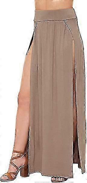 Womens Long Double Split High Waist Ladies Plain Jersey Stretch Two Side Slit Maxi Skirt