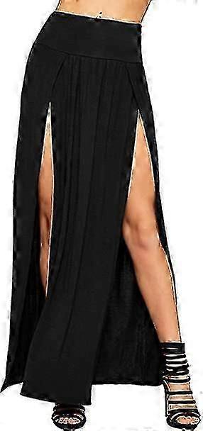Womens Long Double Split High Waist Ladies Plain Jersey Stretch Two Side Slit Maxi Skirt