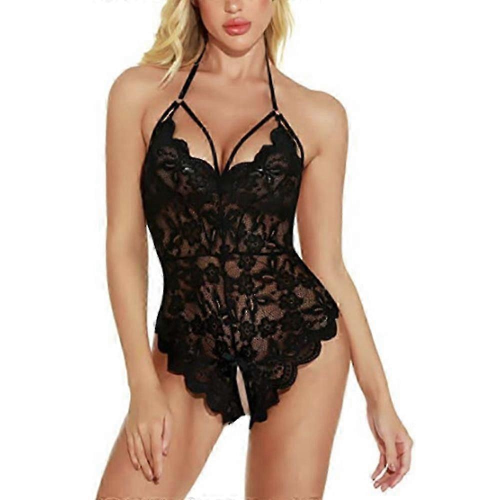 Women Plain Erotic Sheer Halter Lingerie Push Up Bodysuit Crotchless Backless Underwear Nightwear