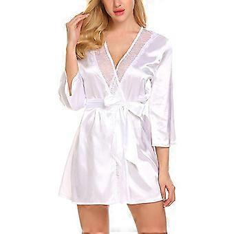 Women Plain Long Sleeve Open Front Sheer Kimono Bathrobe With Belt Short Sleep Robes Sleepwear Nightwear