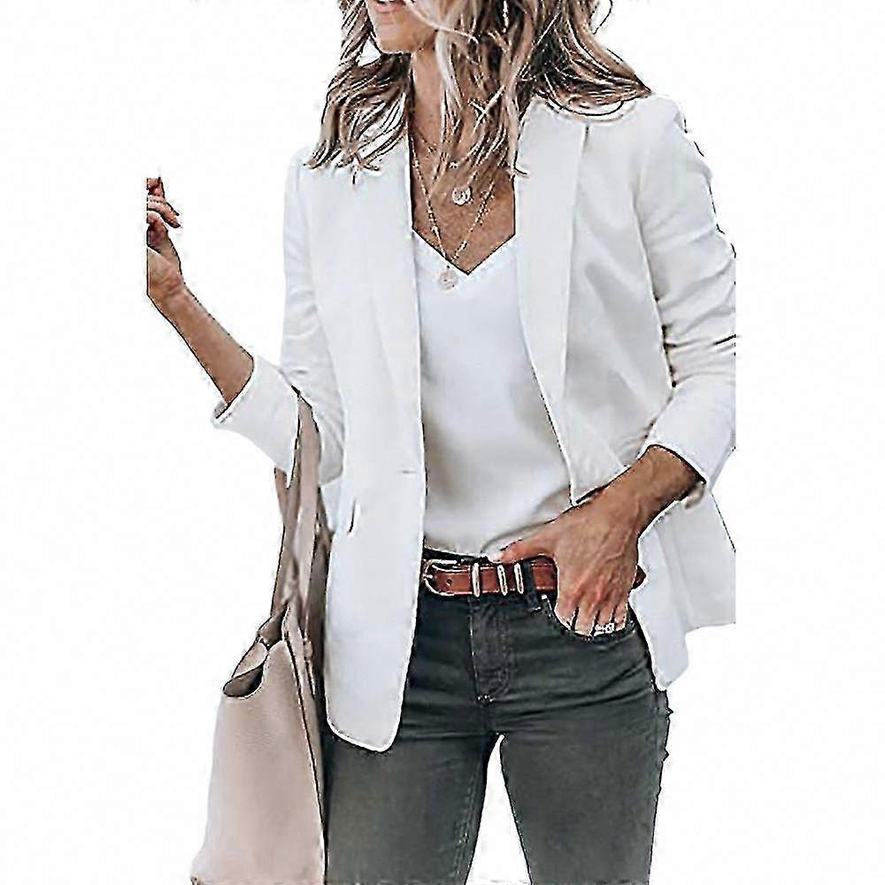 Women's Plain Open Front Lapel Blazer Long Sleeve Work Office Cardigan Jacket