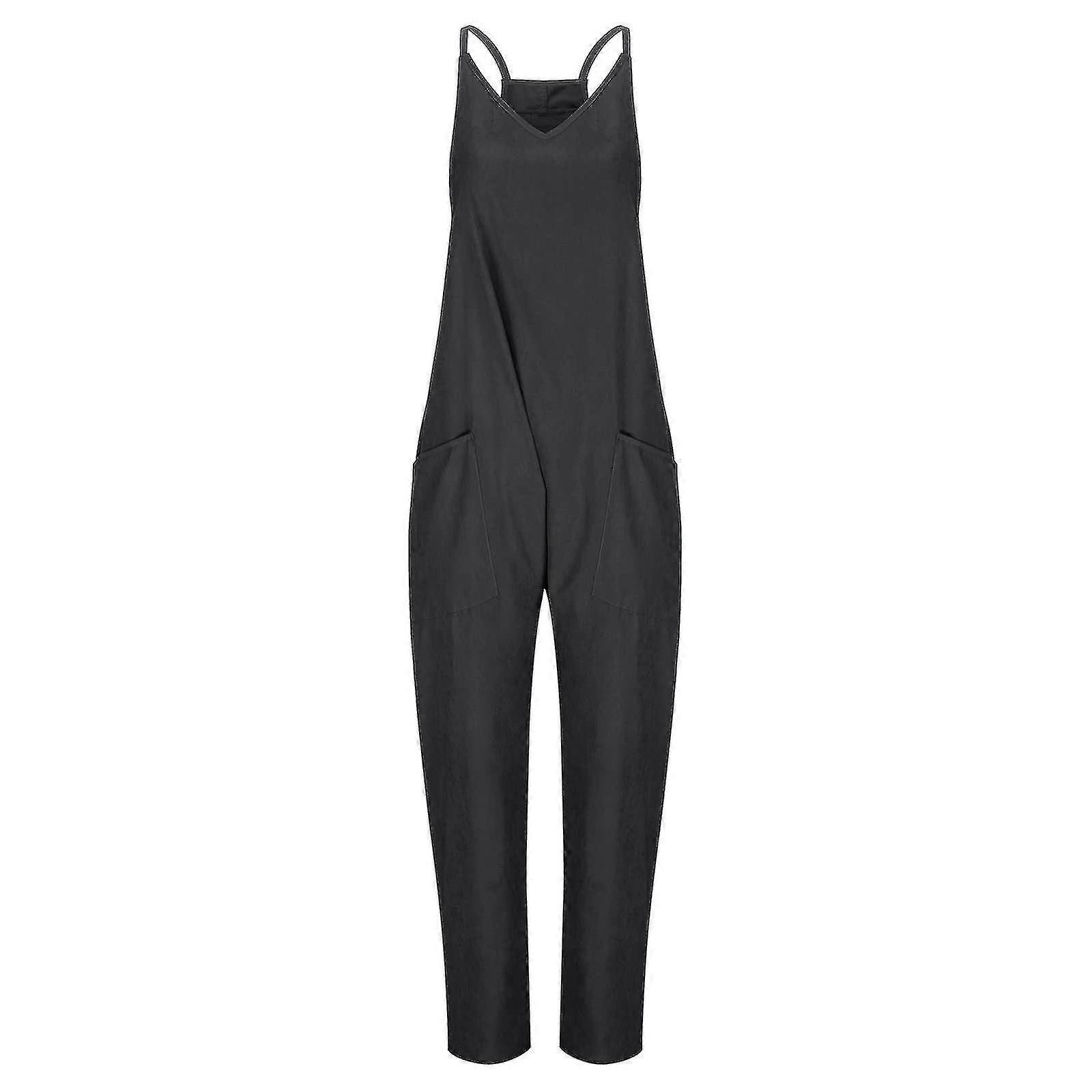 Women's Casual Sleeveless Jumpsuit Adjustable Spaghetti Strap Cargo Long Harem Pants With Pockets