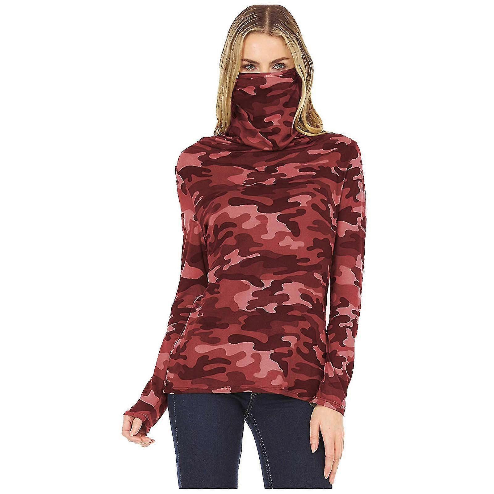 Women Casual Loose Turtleneck Long Sleeve Tie-dye Face Mask Tops Blouse T-shirt