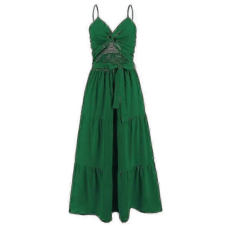Women's Backless Cut Out Split Maxi Dress Twist Front Halter Neck Sleeveless Summer Swing Dresses