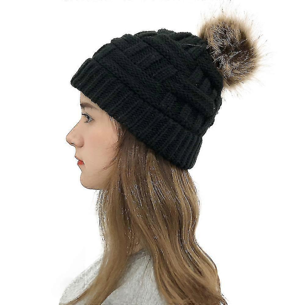 Women Valentines Day Hat Warm Knitted Wool Thick Cap With Ponytail Hole