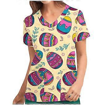 المرأة عيد الفصح طباعة الدعك الطبي التمريض موحدة قصيرة الأكمام جيوب قمم تي شيرت