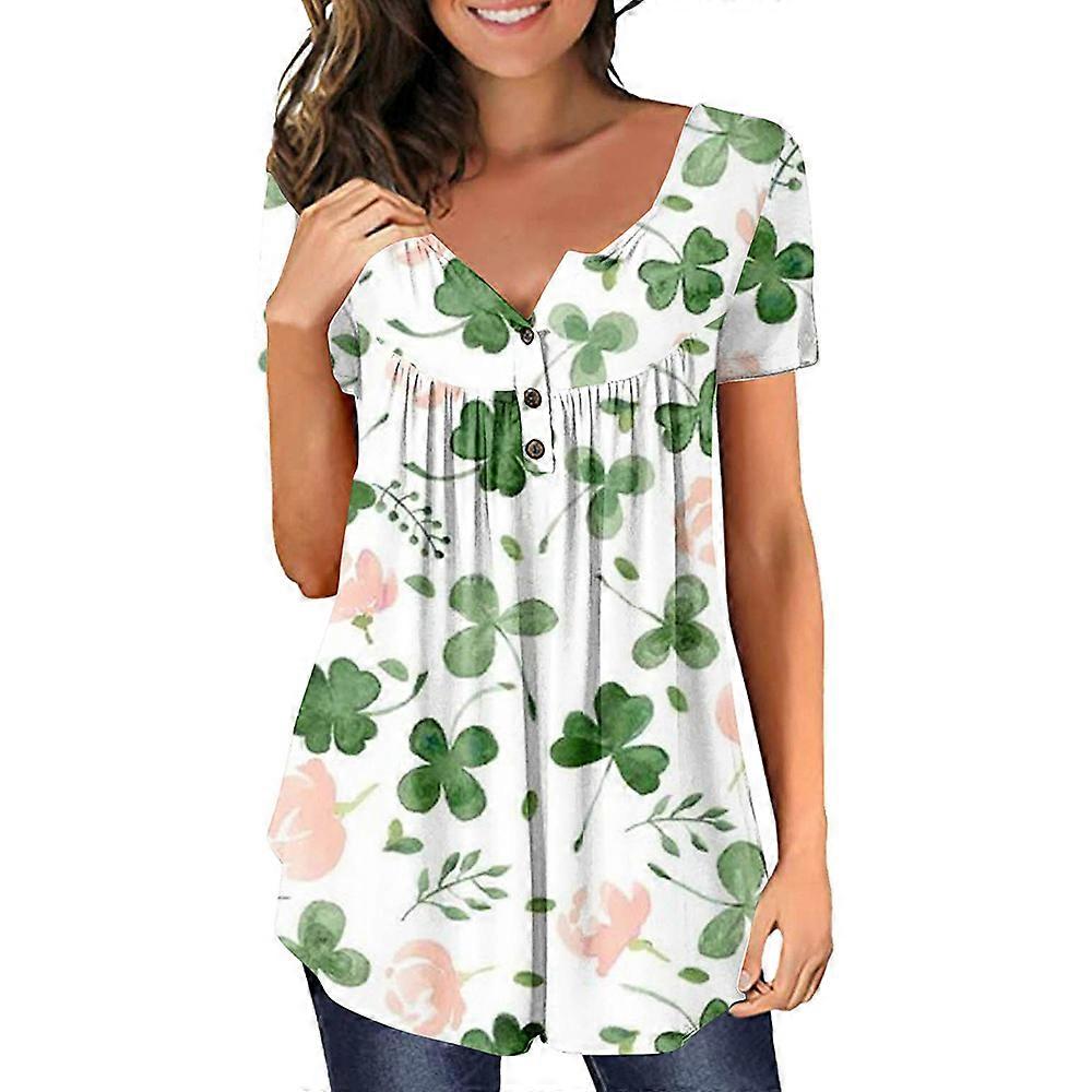 Women's St. Patrick's Day Lucky Shamrock Clover Print Tunic Tops Summer Loose T Shirts Casual Short Sleeve Tee Blouse