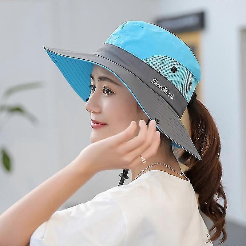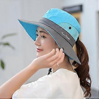 Women's Outdoor Uv-protection-foldable Sun-hats,mesh Wide-brim Beach Fishing Hat With Ponytail-hole