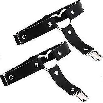 Women Adjustable Igh Garter, Heart Shaped Leg Garter Clips Punk Go Garters For Igh Socks(2pcs, Black)