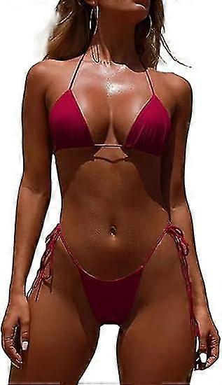 Women's Two Piece Bikini Halter Neck Triangle Top Tie Side Thong Sexy Swimsuit