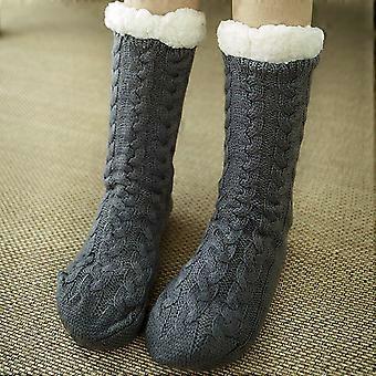 Women Cable Knit Fleece Bed Socks Winter Thermal Slipper Floor Stockings
