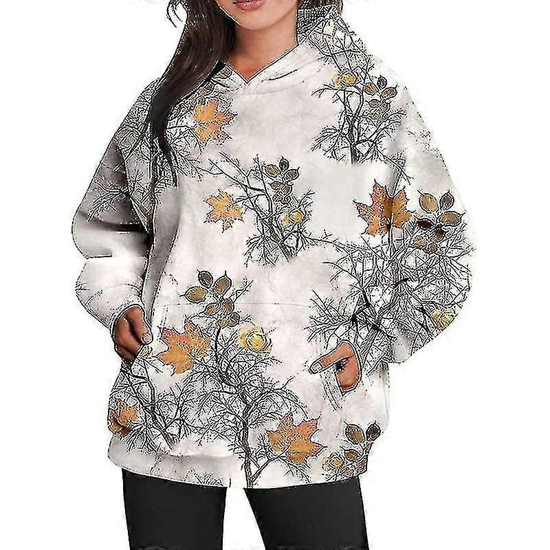 Women Camo Hoodie Print Oversized Fleece Sweatshirt Casual Pullover With Pockets