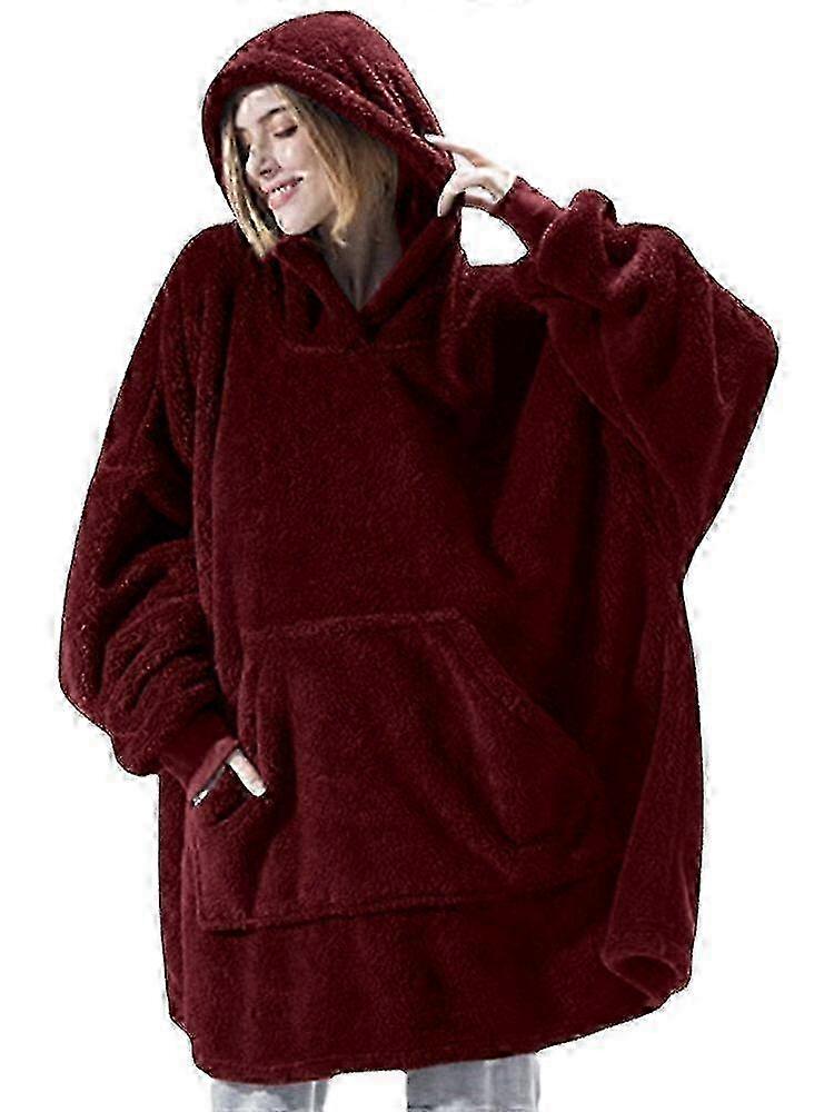 Women's Oversized Plush Blanket Hoodie Robe With Pocket - Warm Sleepwear