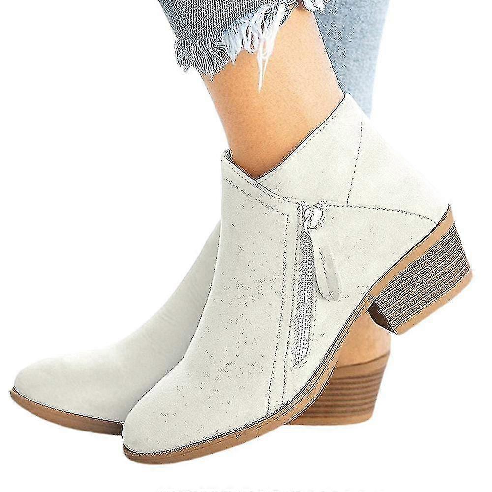 Women's Block Heel Ankle Boots Zipper Chelsea Booties Shoe