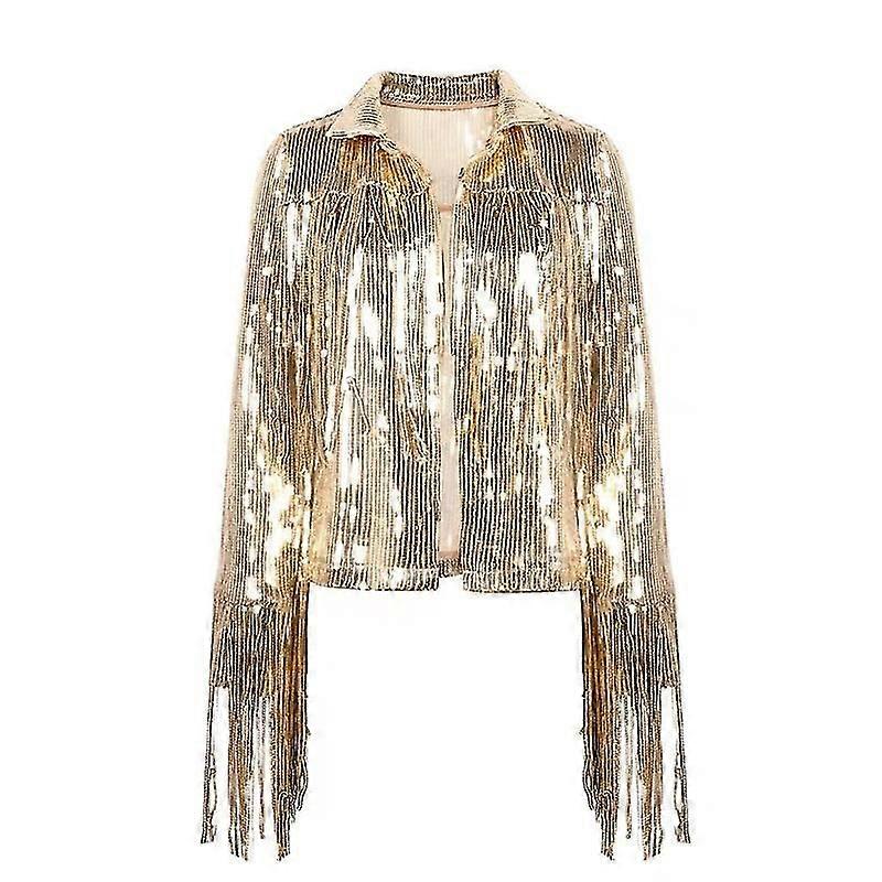 Womens Shiny Sequin Jacket Cardigan Tassel Jacket Coat Party Dress Top