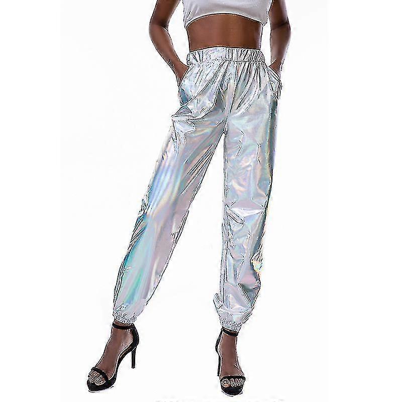 Womens Shiny High Waist Stretchy Pants, Hip Hop Club Sweatpant
