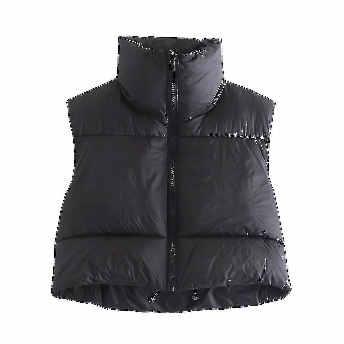 Womens Padded Cropped Puffer Vest Zip Up D Collar Sleeveless Waistcoat