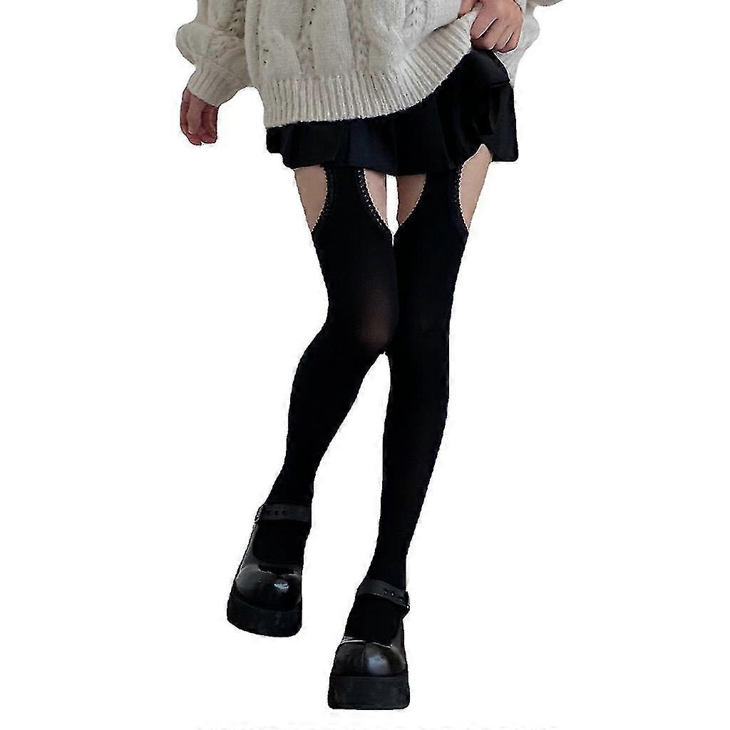 Womens Sexy Side Cutout Holes Suspender Pantyhose Lolita Fake Garter Stockings