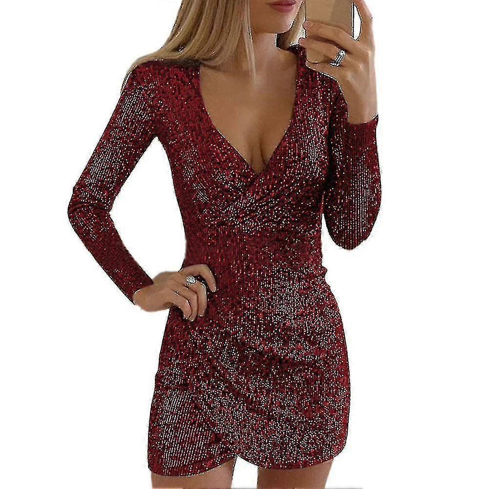 Women"s Sexy V-neck Sequined Dress Long Sleeve Party Dress Sequined Mini Skinny Dress For Fall Winter