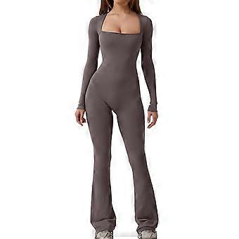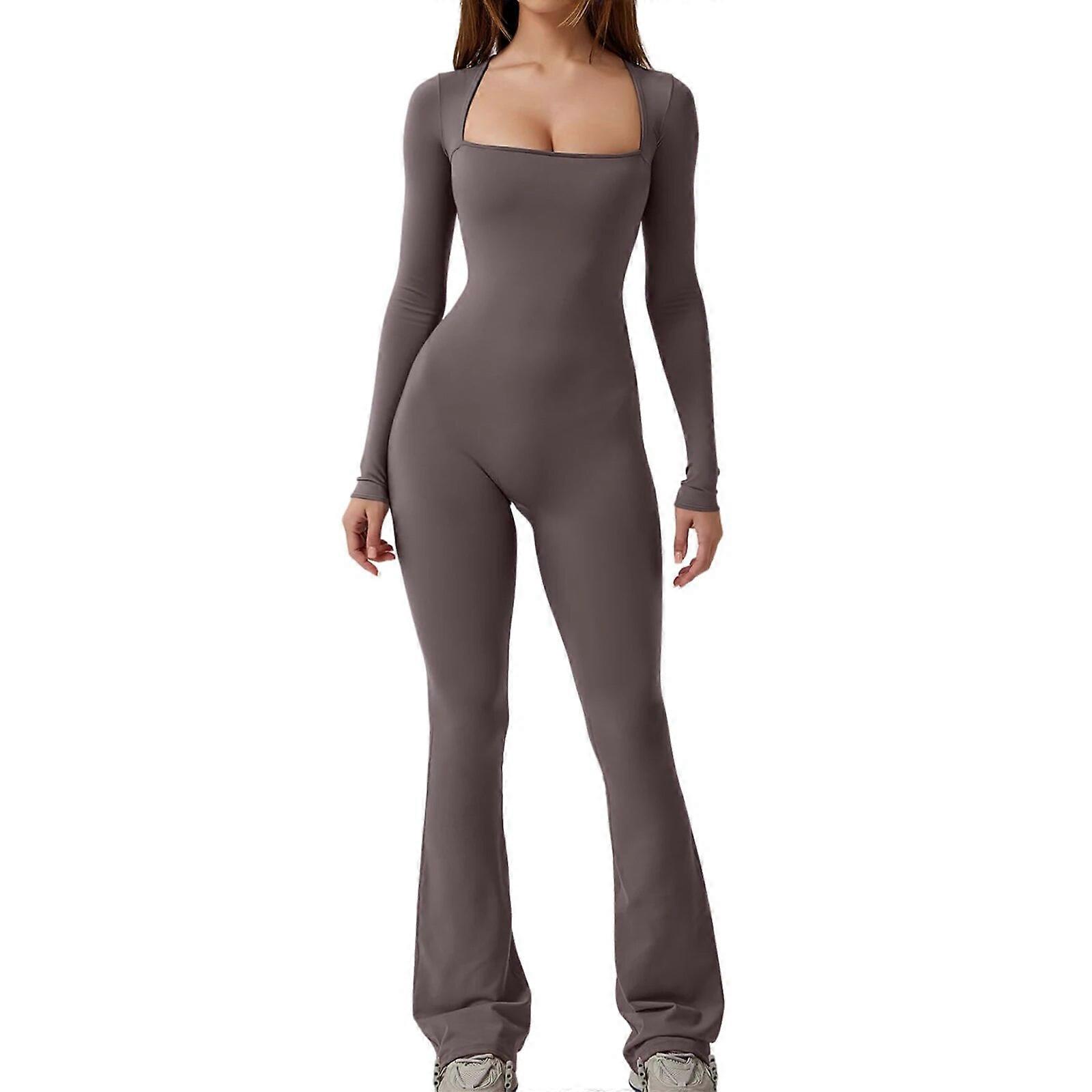 Women s Sexy Open Back Jumpsuit Square Neck Solid Color Jumpsuit Leggings Long Sleeve Straight Leg Wide Leg Jumpsuit