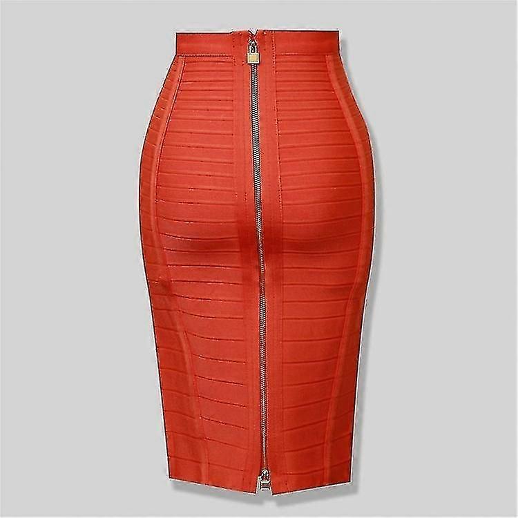 Women's Sexy Zipper Rayon Bandage Skirt Package Hip Skirt Striped High Elastic Bandage Skirt